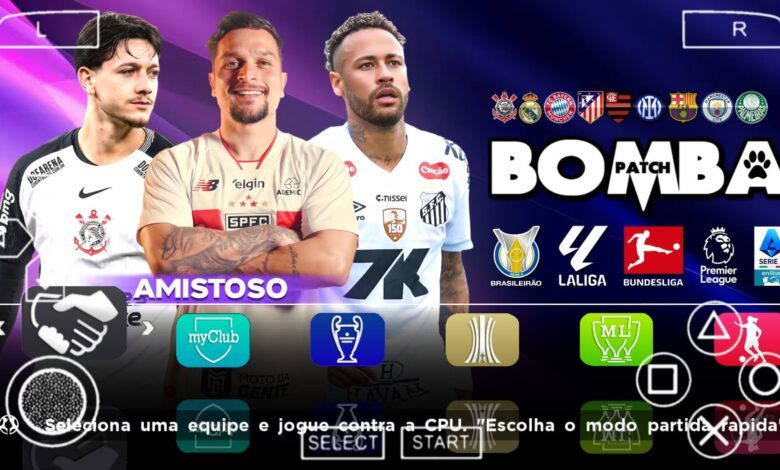 Mesmo sendo um jogo para o emulador PPSSPP, o Bomba Patch 2026 100% Atualizado tem vários modos de jogo, desde casual ou até mesmo para fazer história. O meu preferido é o Rumo ao Estrelato, nesse modo você controla apenas um jogador, mais para quem é mais chegado, a Master League é o preferido dos players. Na Master League você controle um time por completo. Para jogar de primeira, recomendo o modo amistoso, nele você seleciona o time que deseja, seleciona o time contra, e muda algumas configurações especificas. Tem também a opção de jogar ligas e copas fora da Master League e do Rumo ao Estrelato, ao todo são 6 ligas e 6 copas. Para aprender a jogar o Bomba Patch 2026 100% Atualizado, use o modo treinamento, nele tem tudo que você precisa para aprender as melhores jogadas.