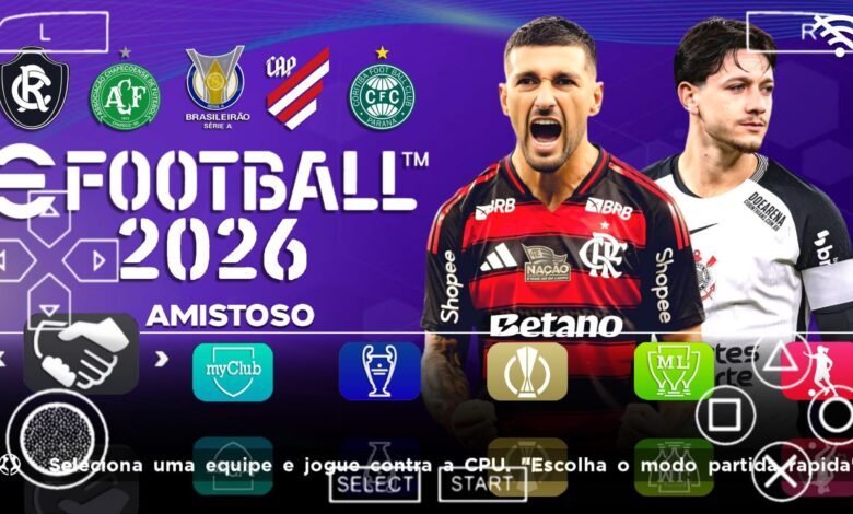 Recursos do Efootball pes 2026 PPSSPP com Brasileirão e Europeus