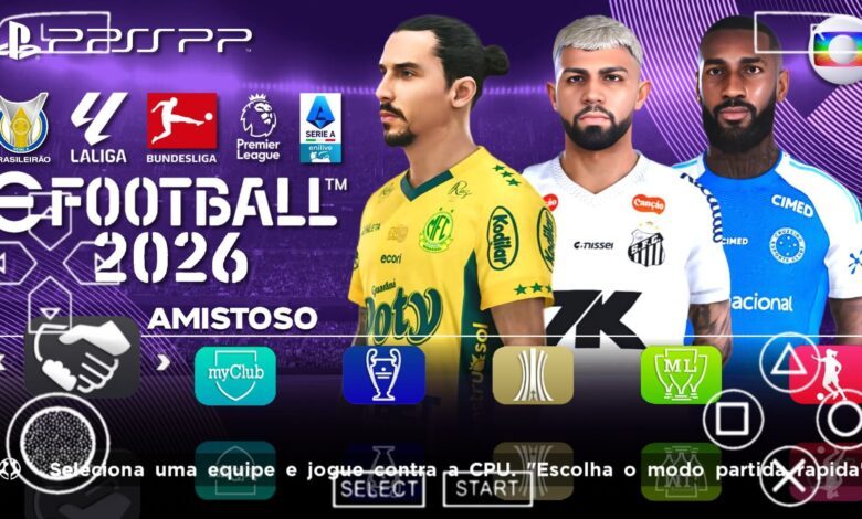 Requisitos para jogar o Efootball Pes 2026 PPSSPP Europeus e Libertadores