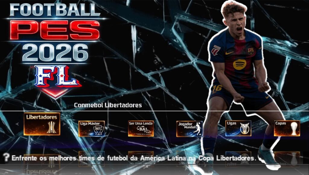Nova atualização oficial do Efootball pes 2026 para PPSSPP com Brasileirão e Europeus, dessa vez o jogo veio com novas novidades, uma delas é a criação de uma nova liga e foi adicionado novos times que subiram de divisão. Efootball 2026 PPSSPP com Brasileirão e Europeus é um jogo de futebol 100% atualizado com 6 ligas oficiais para jogar na Master League e também no Rumo ao Estrelato, fora isso temos as competições principais como a Uefa Champions League e a Uefa Europa League, nesse jogo não tem a Copa Libertadores da América, porém, tem a Copa do Brasil atualizada.