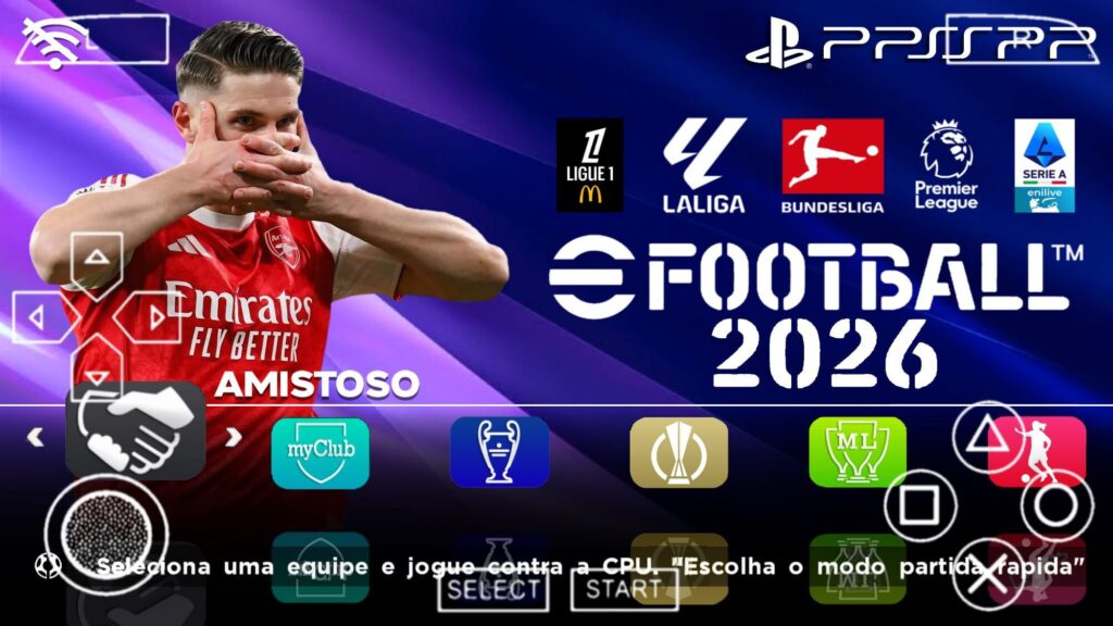 Finalmente saiu o lançamento do novo jogo de futebol para o emulador PPSSPP, dessa vez é o Efootball 2026 Europeus que a galera mais tá jogando, isso porque o jogo veio com a nova temporada do futebol europeu e com novos times. Com os times que subiram de divisão, a Master League fica sensacional e para completar, o Rumo ao Estrelato está com novos recursos para iniciar sua jornada nesse modo de jogo. O Efootball 2026 PPSSPP Europeus está com tudo atualizado para a temporada de 2026, os times que subiram, os times árabes e também as faces realistas que deixam o jogo parecido com o de console.