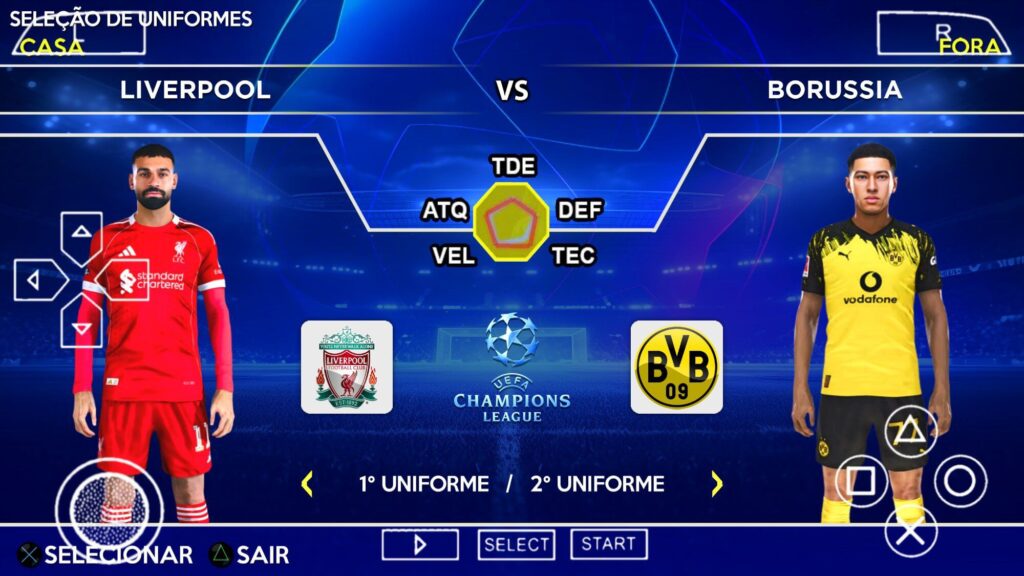 Com a chegada da temporada 2025/2026 no Efootball 2026 PPSSPP Europeus, foi necessário várias correções, uma delas foram os uniformes dos times que atualizamos. Adicionamos ao jogo os uniformes da temporada 2025/2026 em todos os times das ligas, inclusive dos times que jogaram a Uefa Champions League e Uefa Europa League, nesses dois campeonatos o uniformes é um pouco diferente e adaptado para as partidas.