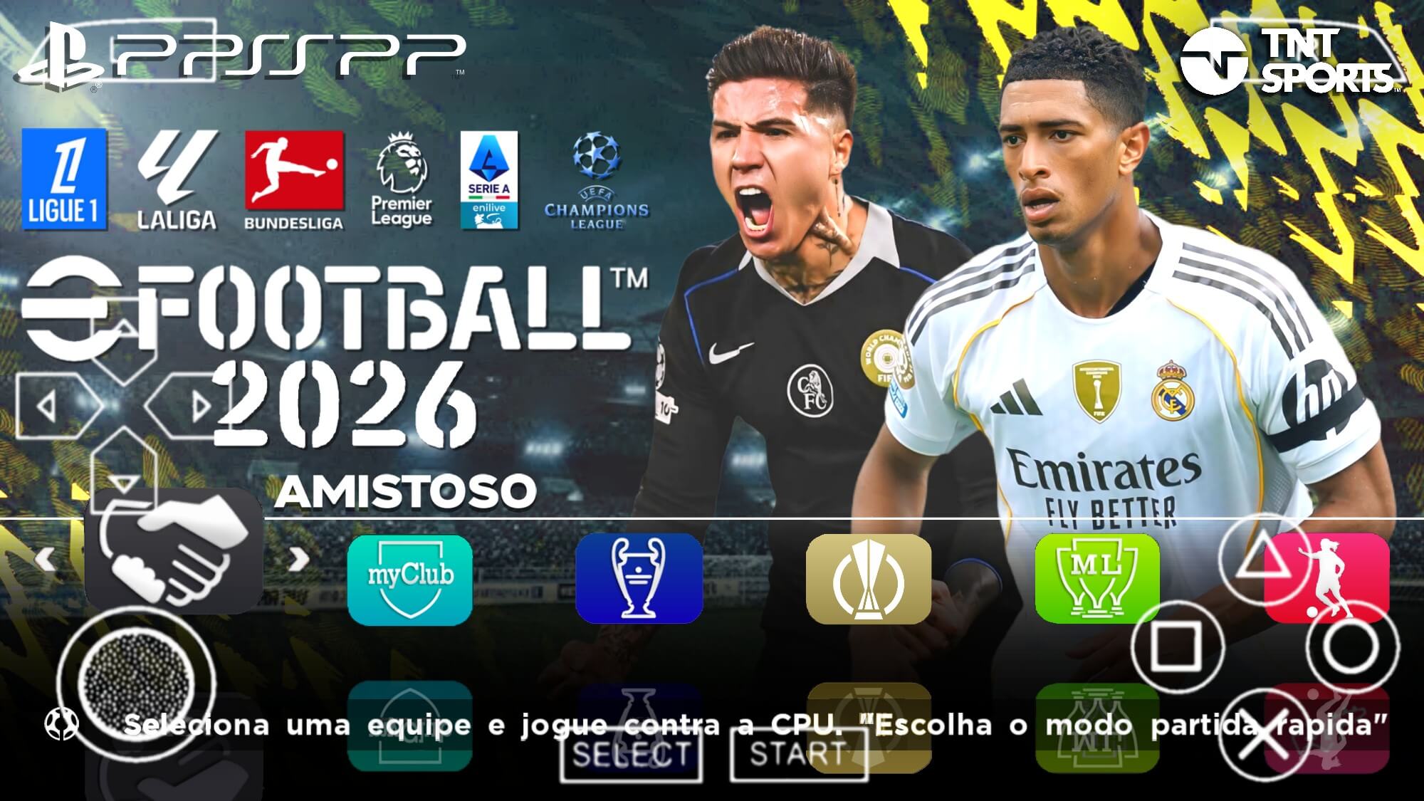 Gráficos e jogabilidade do Efootball 2026 PPSSPP Europeus