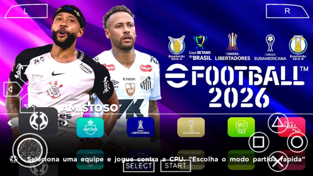 Esse é o novo jogo de futebol oficial do Efootball Pes 2026 PPSSPP Europeus e Libertadores, essa versão do jogo é totalmente focada no futebol europeu, mas, tem vários times da américa do sul na Copa Libertadores da América, que é apenas uma DLC no jogo, não é possível jogar no Rumo ao Estrelato e nem na Master League. É possível jogar amistoso com os times da Copa Libertadores junto com os times europeus. Outra DLC no jogo é a Uefa Champions League, porém, essa incrível competição está disponível na Master League e no Rumo ao Estrelato também caso você se classifique. As ligas oficiais do jogo são as cinco principais ligas do futebol europeu, e estão atualizadas com os novos times que subiram de divisão.