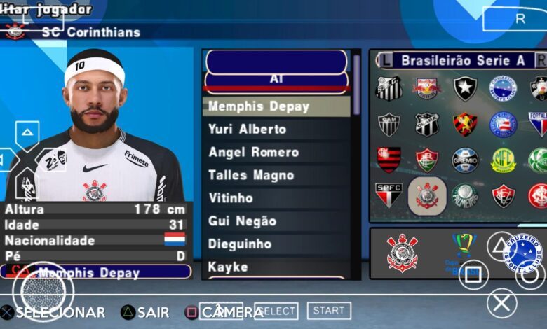 Câmera do Efootball pes 2026 PPSSPP com Brasileirão e Europeus