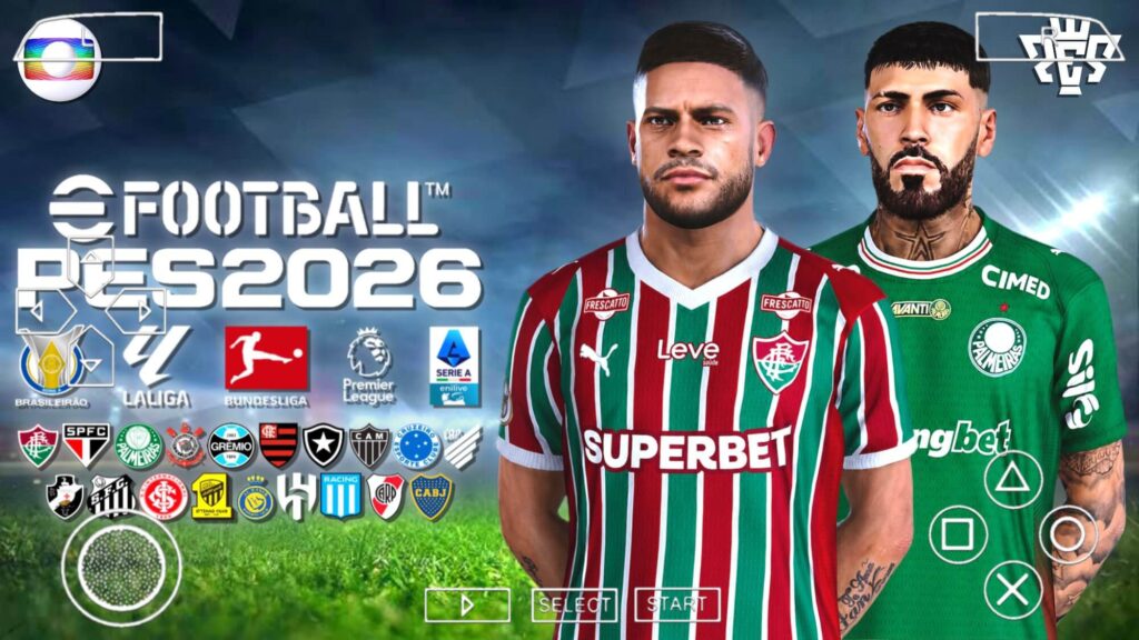 Gráficos do Efootball pes 2026 PPSSPP com Brasileirão e Europeus